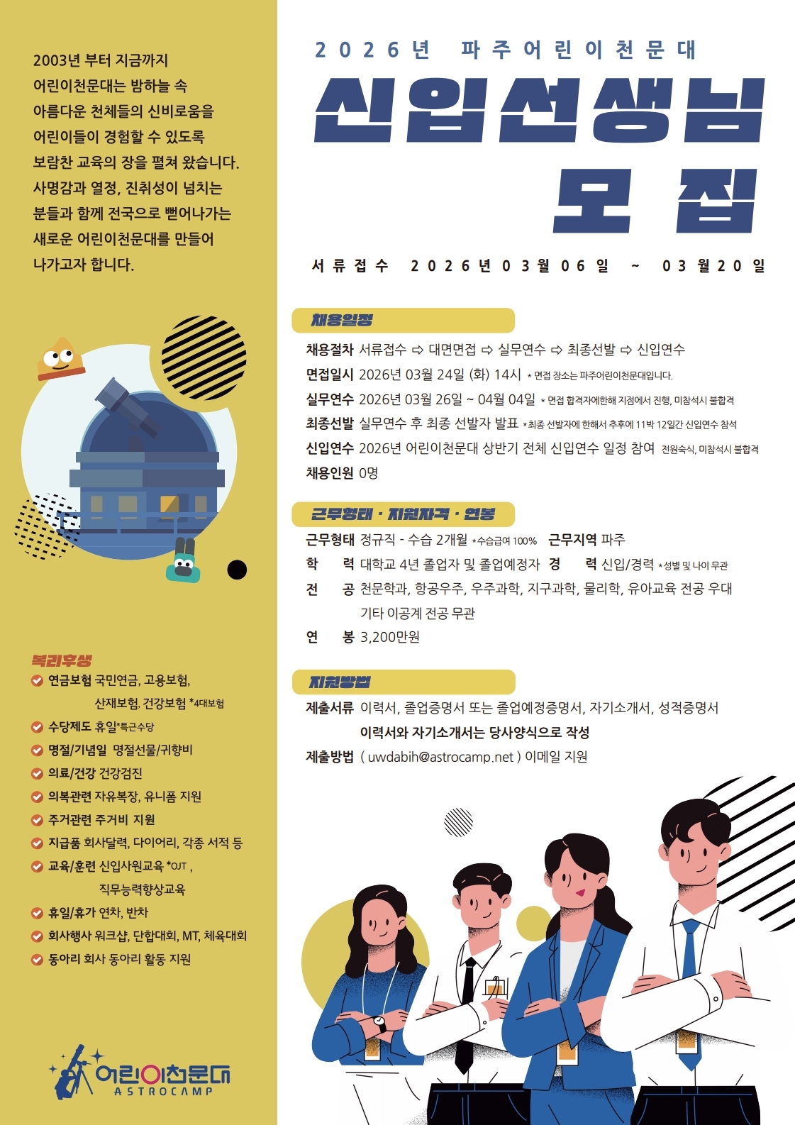 2026년 파주어린이천문대 신입선생님 특채모집