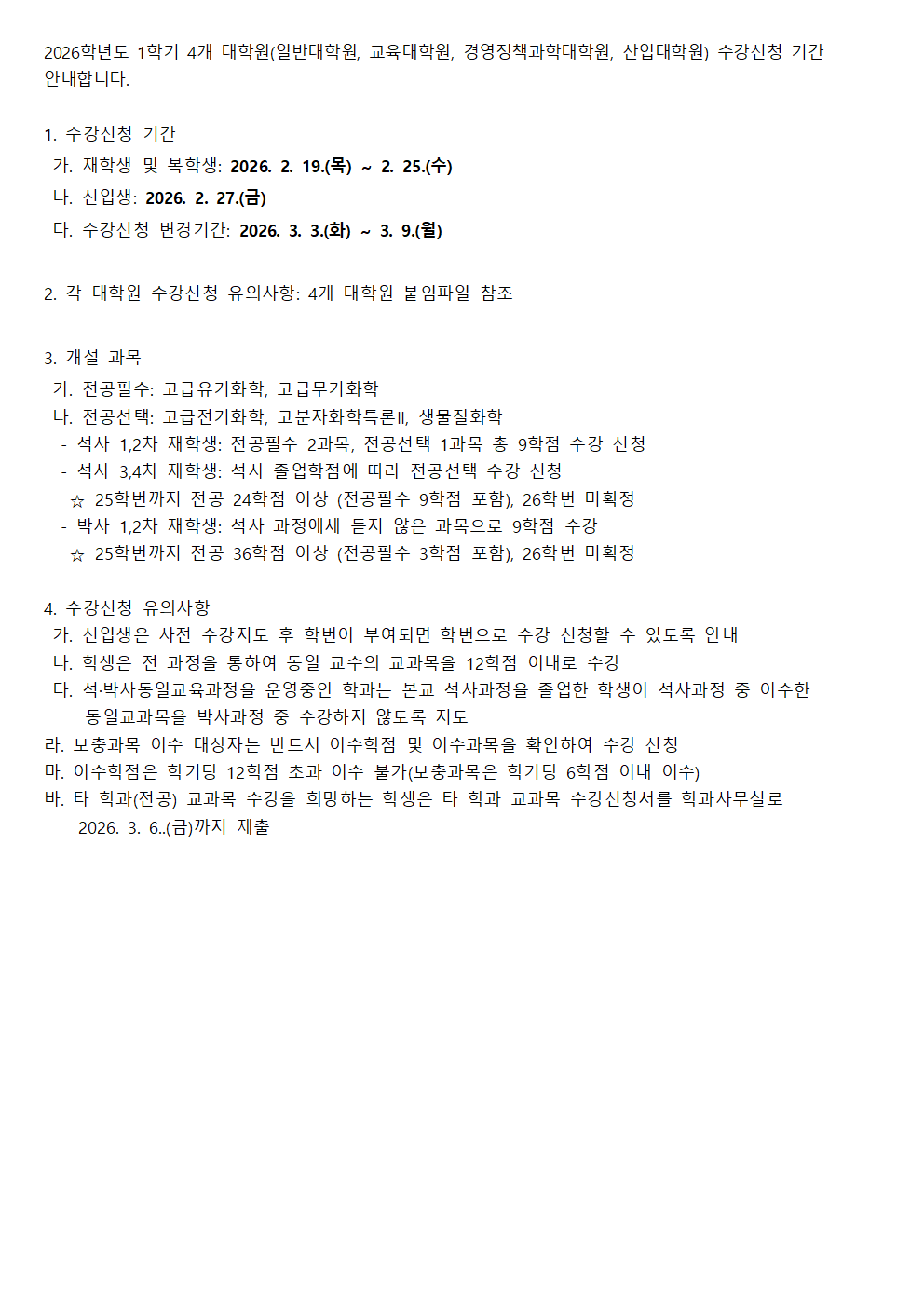 [대학원] 2026학년도 1학기 일반대학원 수강신청 안내