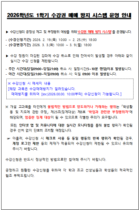 2026학년도 1학기 수강신청 변경 및 취소 방법 알림